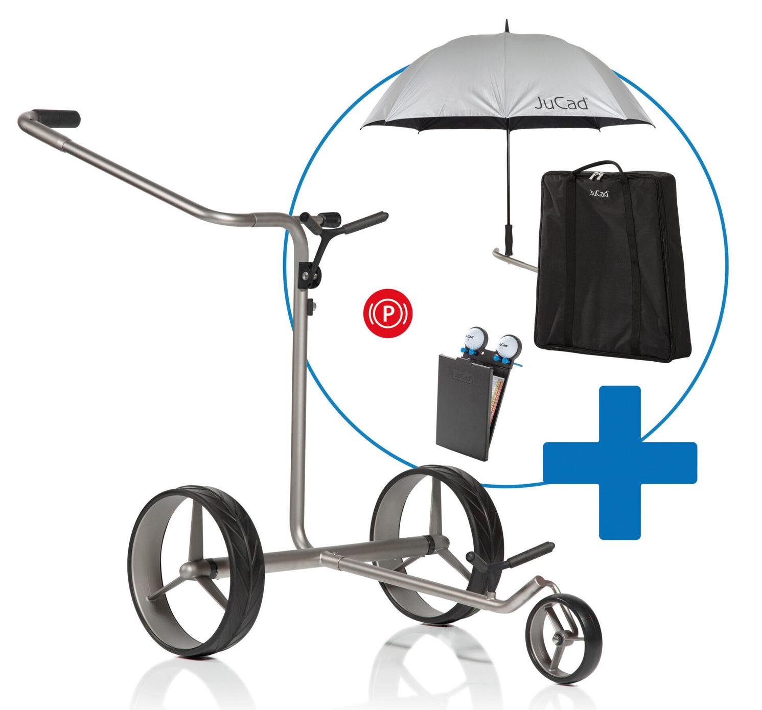 The elegant Titan Elektrocaddy comes with free accessories and you save 1,000 euros! Order the unique promotional set now: